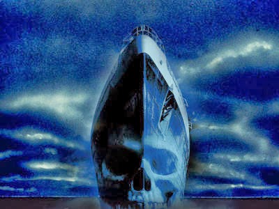 navio espectral, que poderia emergir de águas profundas para atacar outros